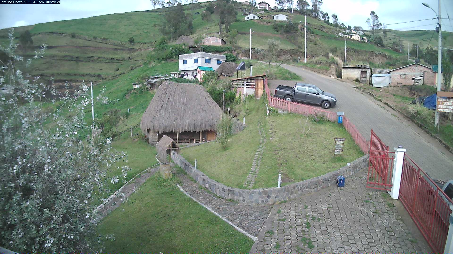 Vista de la Choza (casa construida en estilo tradicional utilizada para el alojamiento de los turistas) realizada en la comunidad La Esperanza, cantón Colta, Ecuador, a una altitud de alrededor 3.600 metros sobre el nivel del mar.